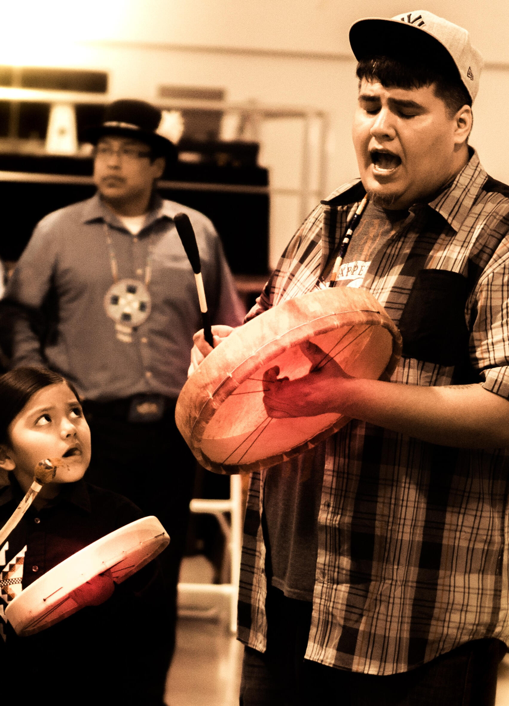 Steven Arrowtopknot is a Native American drum maker, song composer, music producer, and performer from the Blackfeet Nation in Browning, Montana, and the Cree Nation in Sweetgrass, Saskatchewan. Growing up in diverse cultural environments shaped his artistic perspective and fueled his lifelong commitment to creating, producing, and sharing Native music with the world.He’s been singing for most of his life, performing with championship groups at powwows, round dances, and on countless albums. Steven has composed songs for groups like Young Spirit and Bros Round Dance, and over 20 years of hands-on experimentation, he taught himself the art of drum making—working with different materials, techniques, and coloring methods until he found a process that resonates in both sound and spirit. His powwow and hand drums have been part of many championship contest wins across Native America, including the Gathering of Nations, and can be heard on a wide range of recordings.